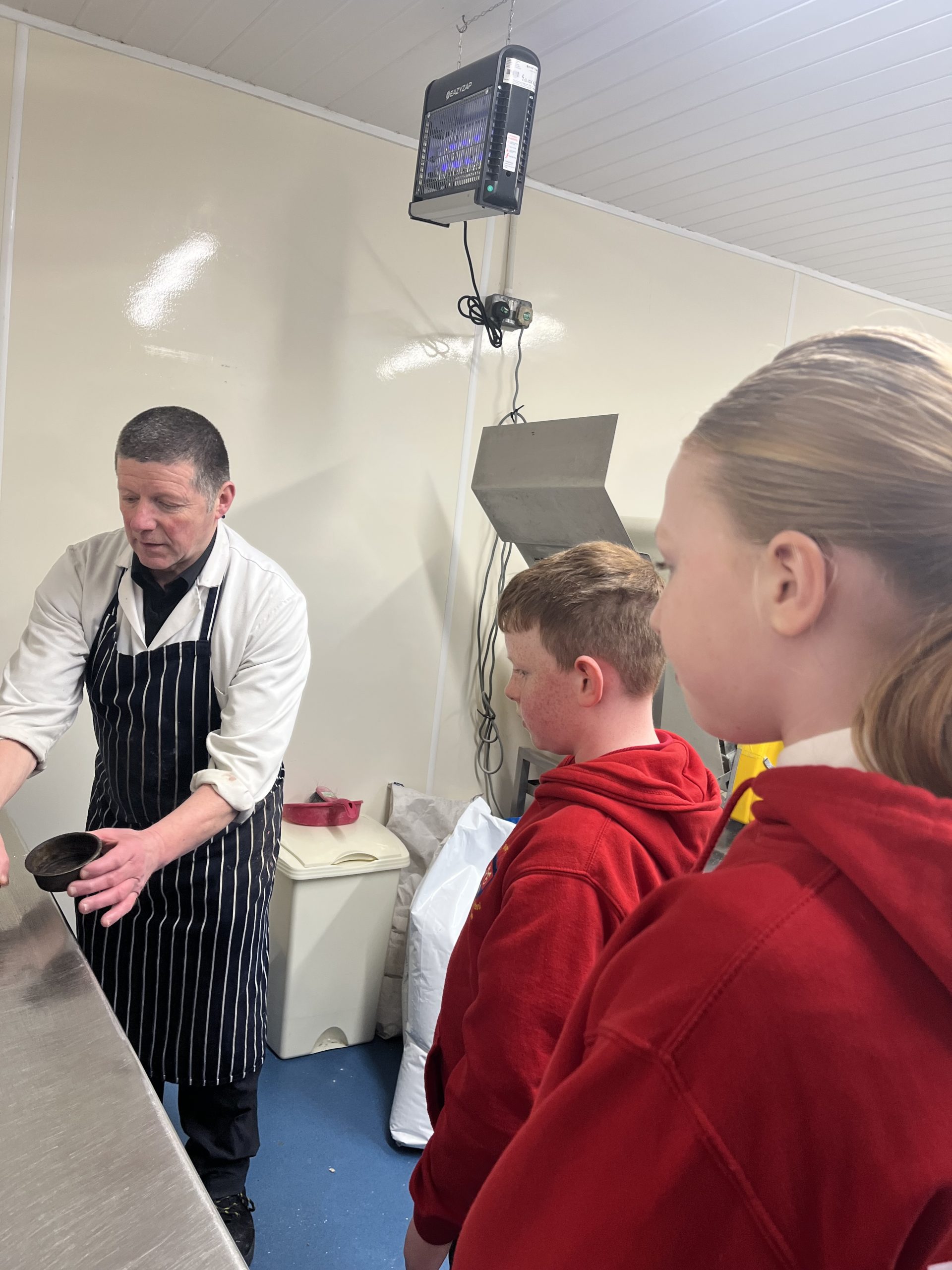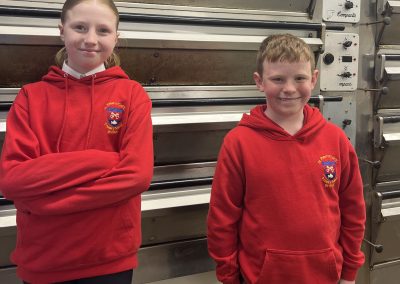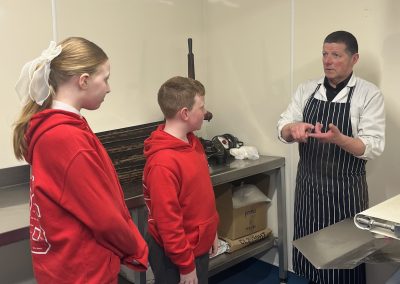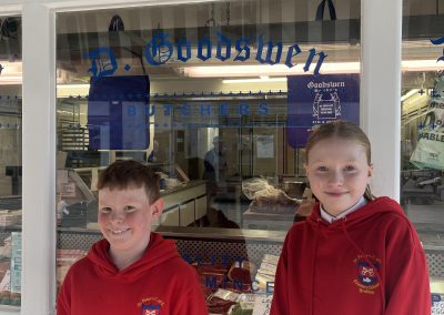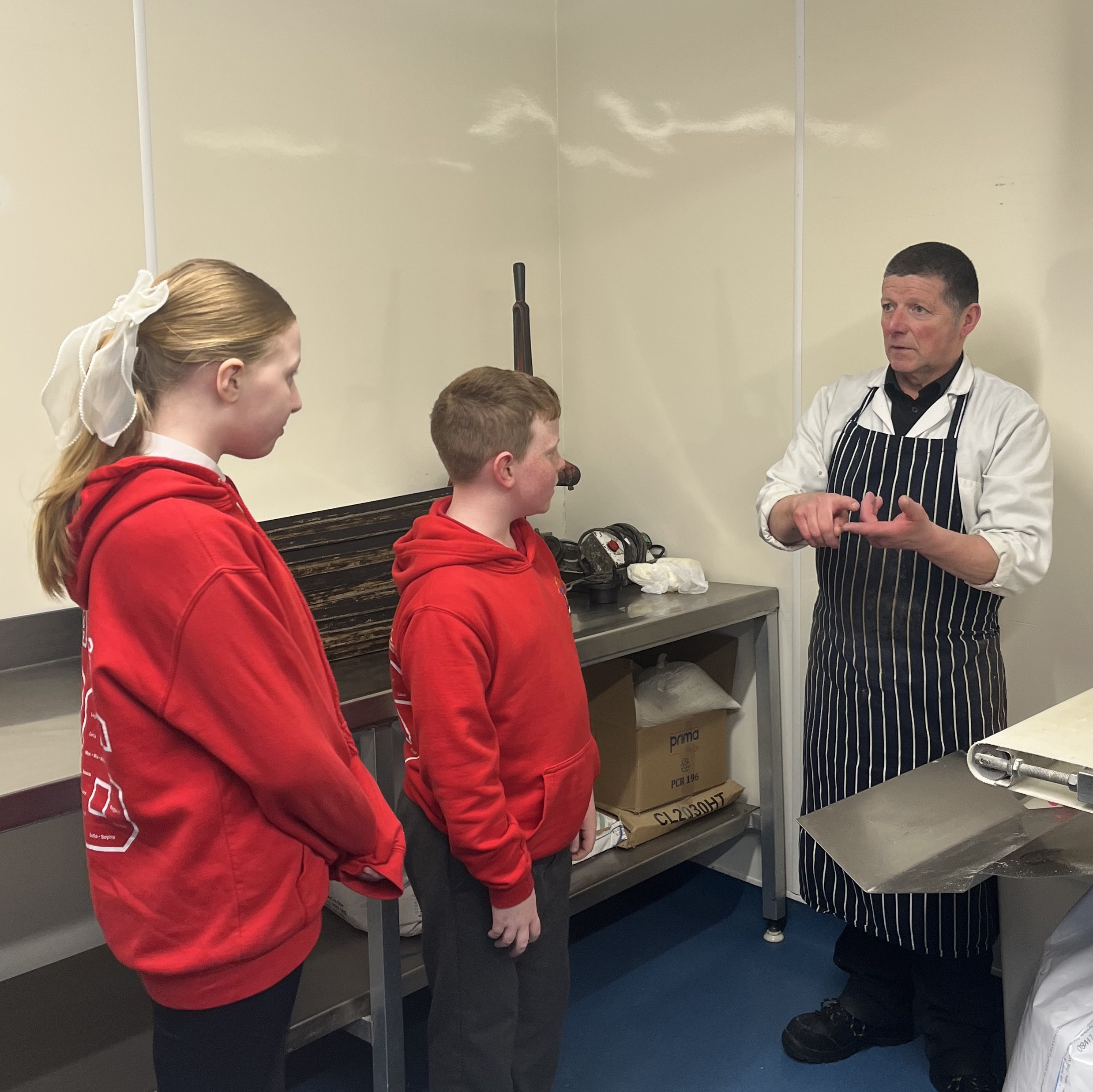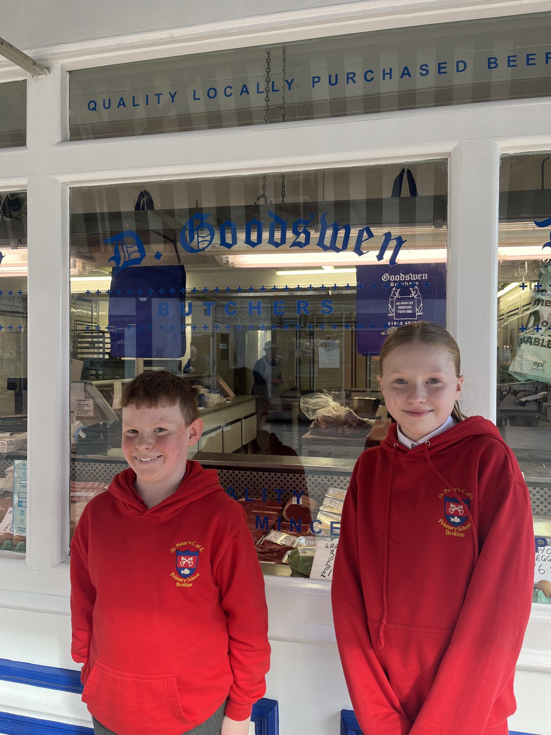 The two winners visited the butcher’s shop with Headteacher Mr Woodhouse to see how their ideas were brought to life.